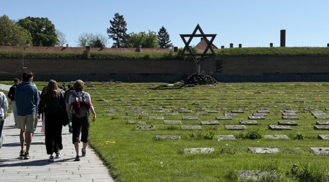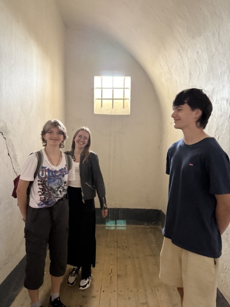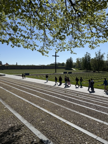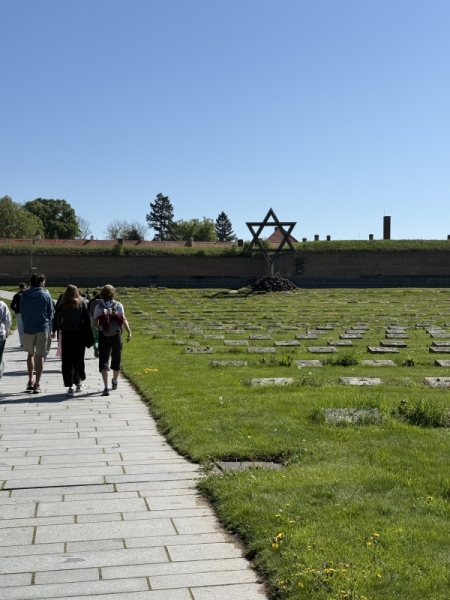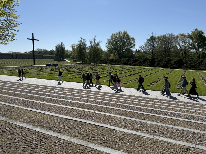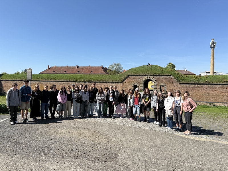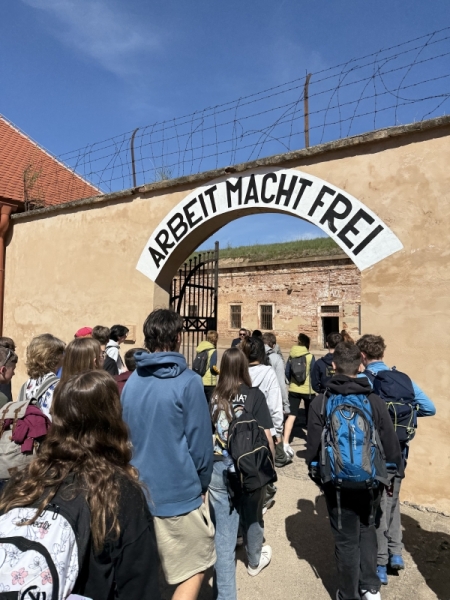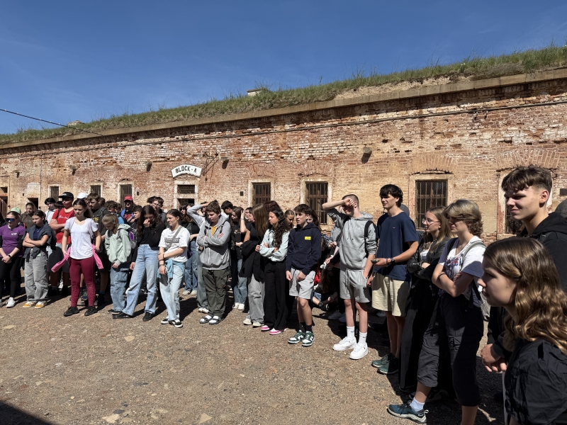Na konci dubna, ve dnech, kdy si celý svět připomínal 80 let od konce druhé světové války, jsme s kvartou podnikli exkurzi do města Terezín. Naším první cílem bylo Muzeum ghetta, kde jsme viděli dokumentární film o historii terezínského ghetta a prohlédli si působivé expozice věnované nejmladším obětem. Procházkou městem jsme došli k Malé pevnosti, která sloužila v letech 1940 – 1945 jako věznice pražského gestapa pro odpůrce nacistického režimu. Během prohlídky jsme navštívili kanceláře dozorců, cely vězňů, sprchy, odvšivárnu, marodku, nemocnici i popraviště a také Národní hřbitov.