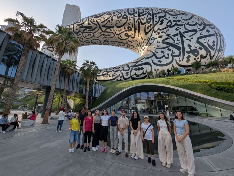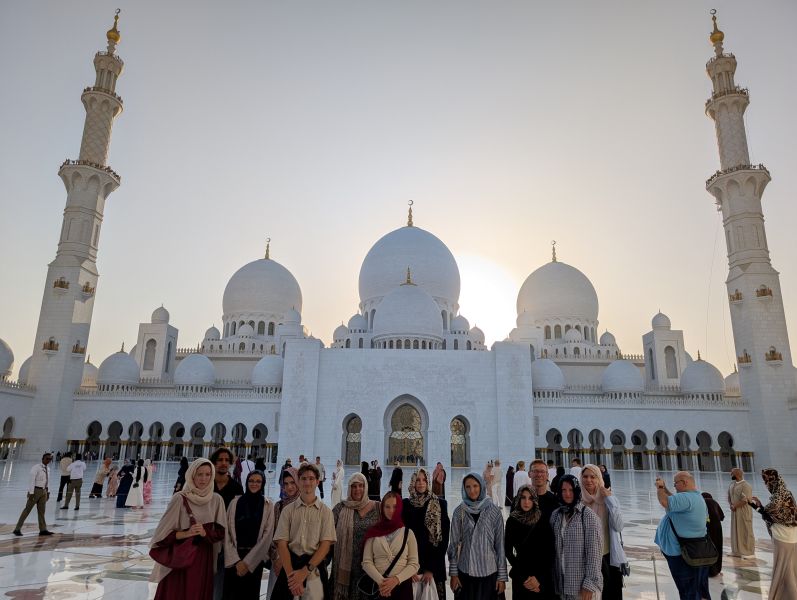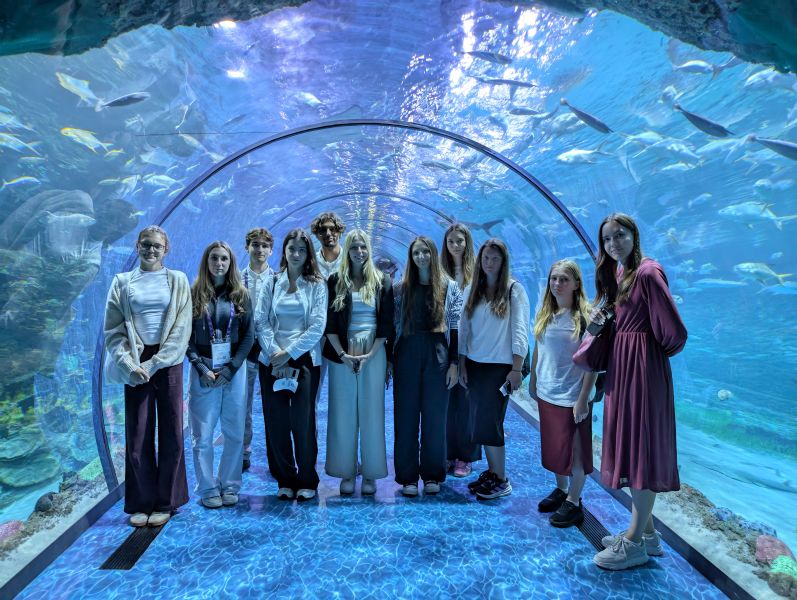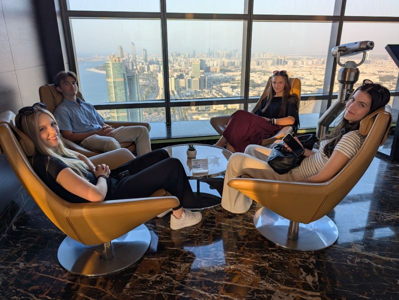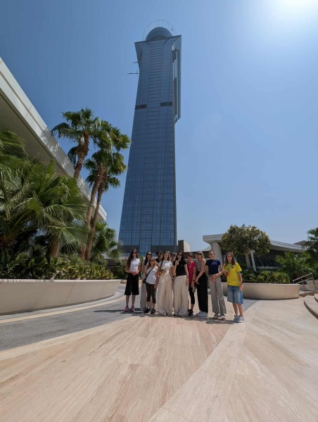 I když se z předešlých řádků může zdát program dost nabitý, přeci jenom nejen vědou živ je člověk a debrujáři mají velkou chuť poznávat svět. V Abú Dhabi stihli navštívit mešitu Sheikh Zayed, což je největší mešita ve Spojených arabských emirátech, známá svou nádhernou bílou architekturou, mramorovými sloupy a zlatými detaily. Hned druhý den po příletu jim své brány otevřel i prezidentský palác Qasr Al Watan. Viděli tedy monumentální palác, který slouží jako sídlo vlády a místo pro oficiální státní návštěvy, který nabízí pohled do historie, kultury a právního systému SAE. Z Etihad Tower pak měli rozhled na celé Abú Dhabi, zejména pak na Emirates Palace luxusní hotel známý svou okázalostí, který si pak prohlédli i z blízka. Návštěva National Aquarium, největšího akvária na Blízkém východě, byl obrovský zážitek nejen pro milovníky podmořského světa. Kde jinde lze vidět více než 330 druhů ryb a dalších živočichů. Zajímavý byl i pohled do života záchranné stanice, která si klade za cíl chránit a vracet do volné přírody co nejvíce mořských živočichů. Nejúchvatnější zážitek čekal debrujáry v poslední navštívené atrakci TeamLab Phenomena. Interaktivní umělecký prostor, který propojuje umění, vědu, technologie a přírodu je doslova pohltil. Prožili si instalaci, ve které se umělecká díla neustále měnila a reagovala na okolí i na samotné návštěvníky. Díla se přizpůsobovala pohybu a dotyku návštěvníků a vytvářela tak dynamické, jedinečné a smyslové zážitky.