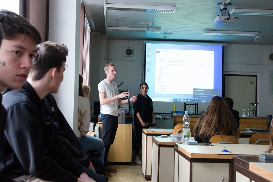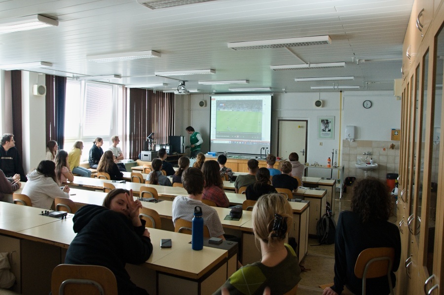 V tělocvičně se pod vedením paní učitelky Mayové střílelo na přesnost. Nejvíce bodů v kategorii jednotlivci získal Viktor Václav Rejnart ze sekundy. Ze tříd nižšího gymnázia se nejlépe trefovala prima a z vyššího pak 1. A. Největší účast na této disciplíně byla ze septimy. Pan učitel Rež, garant závodů robotů shrnul robotí klání takto: Tak jako v minulém roce i letos si současní primáni z kroužku robotiky pod vedením Aničky Hnídkové z kvarty připravili pro své spolužáky závody LEGOrobotů. Chodbu na třetím patře tak zaplnily dvě identické dráhy s několika překážkami, které musel soutěžící, pokud možno bez nehody a na čas, projet do cíle. Robot se řídil aplikací v telefonu přes Bluetooth. Už od počátku bylo jasné, že organizátoři budou mít letos plné ruce práce. Zájemců o soutěž bylo leckdy více než robotů a občas bylo nutno si chvíli počkat, než na účastníka vyšla jeho jízda. Krom tradičně vysoké účasti primánů a dalších členů z robotiky se letos do klání zapojili i někteří starší žáci. Základní kolo umožnilo po krátkém tréninku každému účastníku dvě ostré jízdy, z nichž se započítala ta s lepším časem. Sedm nejlepších pak postoupilo do finále, kde se soutěžilo dalšími dvěma jízdami, ovšem tentokrát se započítaly časy obou jízd. Kolem půl třetí pak naše škola poznala letošní vítěze a je obdivuhodné, že Jan Kmínek ze sekundy i přes napínavý závěr nakonec obhájil své zlato z loňského roku. Všem organizátorům děkujeme za pěkně připravenou soutěž a vítězům gratulujeme k úspěchu! Soudě, dle řady diváků, kteří si počkali na finále, ač sami už vypadli, věříme, že robotické klání si nakonec užili všichni zúčastnění.