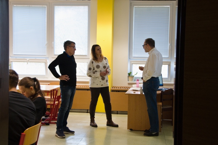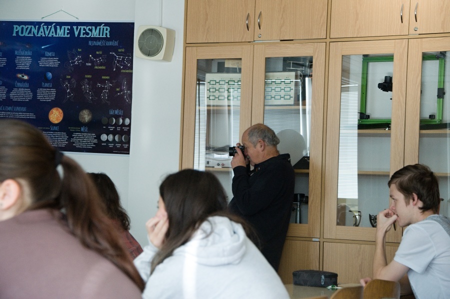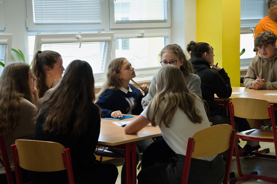 V učebně výtvarné výchovy šikovní malíři zachytili svou kresbou podzim. Napínavý byl souboj ve volejbale v tělocvičně, kde se proti sobě utkal tým učitelů a studentů.