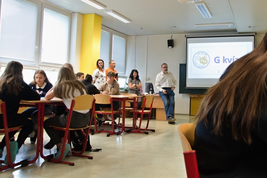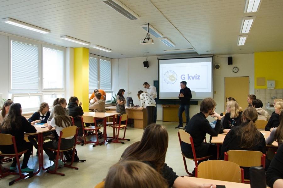 Rozběhl se první ročník G kvízu. Paní učitelka Lenka Česenková zhodnotila první ročník G kvízu, který pořádala se svými kolegy Antonínem Mestekem a Janou Pěčovou pro hravé studenty následovně: Proběhl první ročník G kvízu, dokonce za laskavé účasti RNDr. Jiřího Martínka, známého z televizního pořadu Na lovu pod loveckým jménem Doktor Vševěd. Pan Martínek soutěž uvedl bonusovou otázkou V kolika epizodách pořadu Na lovu vystupoval v roli lovce? Správná odpověď byla 132 a nejblíže byl tým Chňapíci, který si odnesl cenu v podobě podepsaných fotografií Doktora Vševěda.
