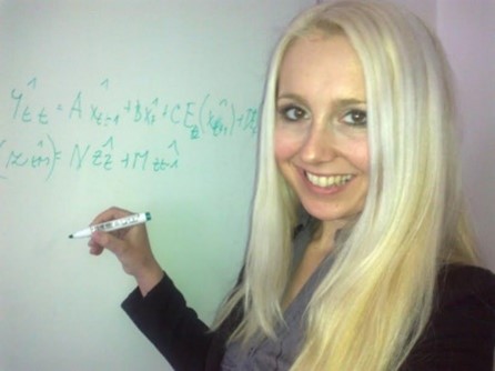 „Po maturitě jsem nastoupila na bakalářský program ekonomické teorie na Univerzitě Karlově. Během studia jsem začala pracovat jako Economic Analyst v konzultační firmě prof. Mejstříka. Po zdárném absolvování bakalářského studia jsem pokračovala na navazujícím magistru, ovšem v rámci programu joint master in economic theory ve splupráci s CERGE-EI. Před koncem studia jsem v roce 2011 nastoupila na Ministerstvo financí ČR do vědeckého oddělení ekonomického modelování, kde ještě se dvěma kolegy především teoreticky rozšiřujeme a aplikujeme dynamický stochastický model všeobecné rovnováhy (DSGE) pro Českou republiku. V únoru 2012 jsem dokončila magisterské studium s pochvalou děkana. Od října 2012 jsem také doktorandkou ekonomické teorie a ekonometrie na UK a ráda bych za jméno připojila PhD. Vedla jsem a vedu bakalářské i magisterské semináře z ekonometrie a mikroekonomie u nás na škole a také na VŠE. V rámci svého výzkumu hledám nejlepší matematickou metodu pro odhad gravitačního modelu zahraničního obchodu.